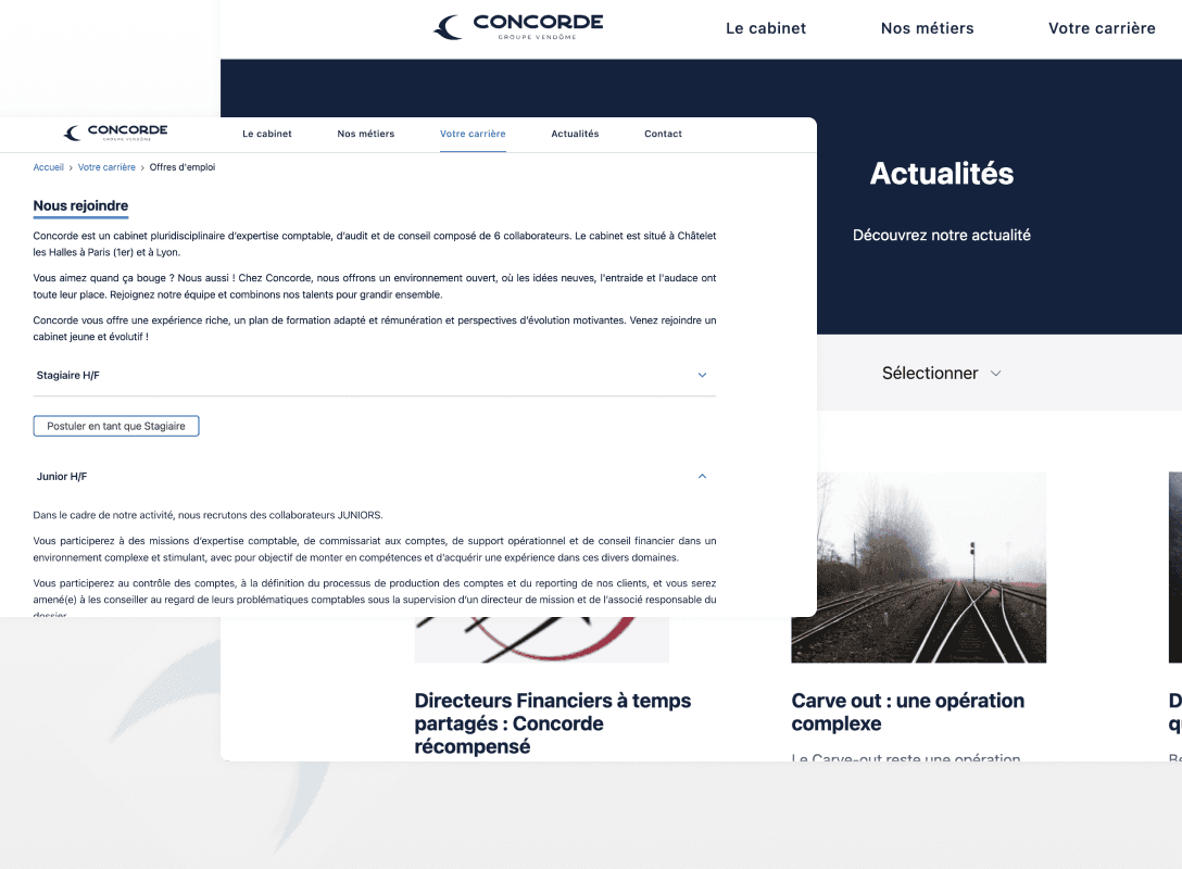 Concorde GV is a financial expert firm that positions is structured around five main areas of expertise : audit, accompaniment, financial advise, HR & delegated financial management.